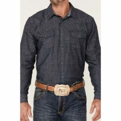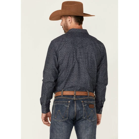 Budget ๐ Cody James Men’s Washed Out Chambray Southwestern Print Long Sleeve Snap Western ๐ Shirt Navy โ