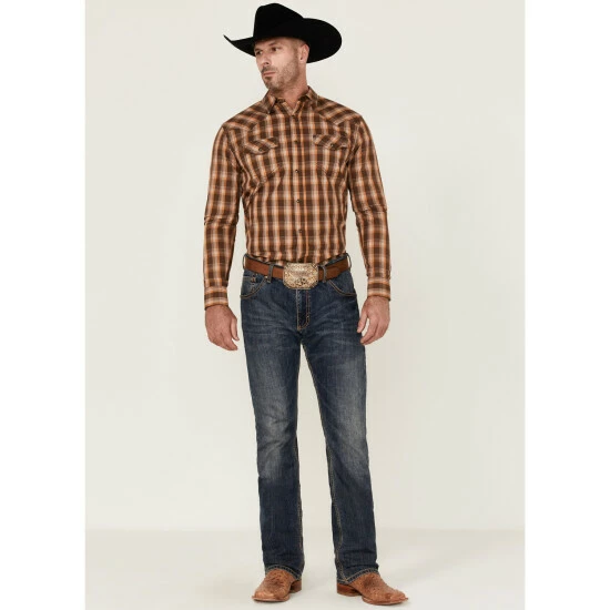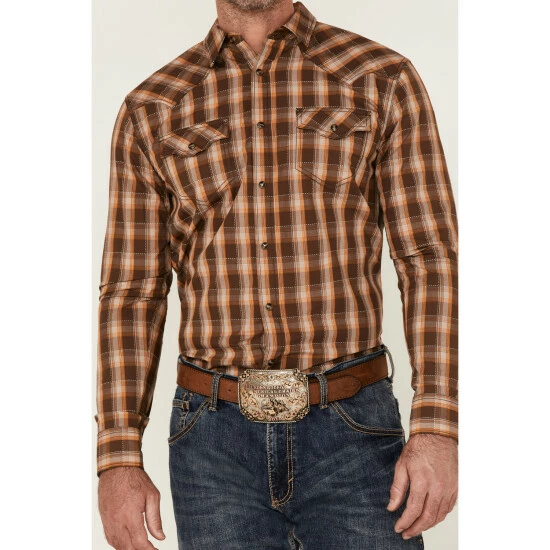 Brand new ๐ Cody James Men’s Weekender Plaid Long Sleeve Snap Western ๐ Shirt Brown โ๏ธ